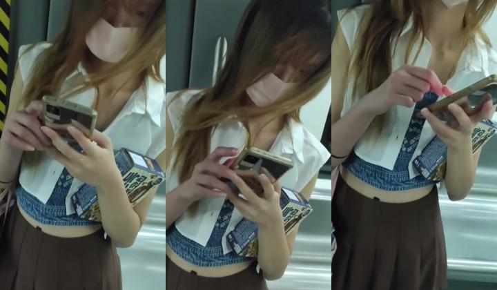 包臀裙露腰套装美女街边秀恩爱被抄底圆点内裤